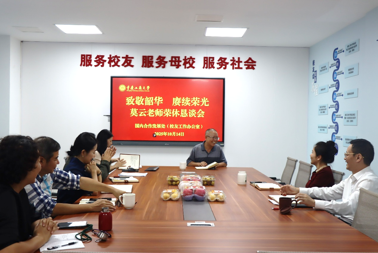 10月14日下午,致敬韶华 赓续荣光——莫云同志荣休恳谈会在厚德楼1017会议室举行。国内合作发展处(校友工作办公室)处长郭敏主持会议。全处教职工参加恳谈会。