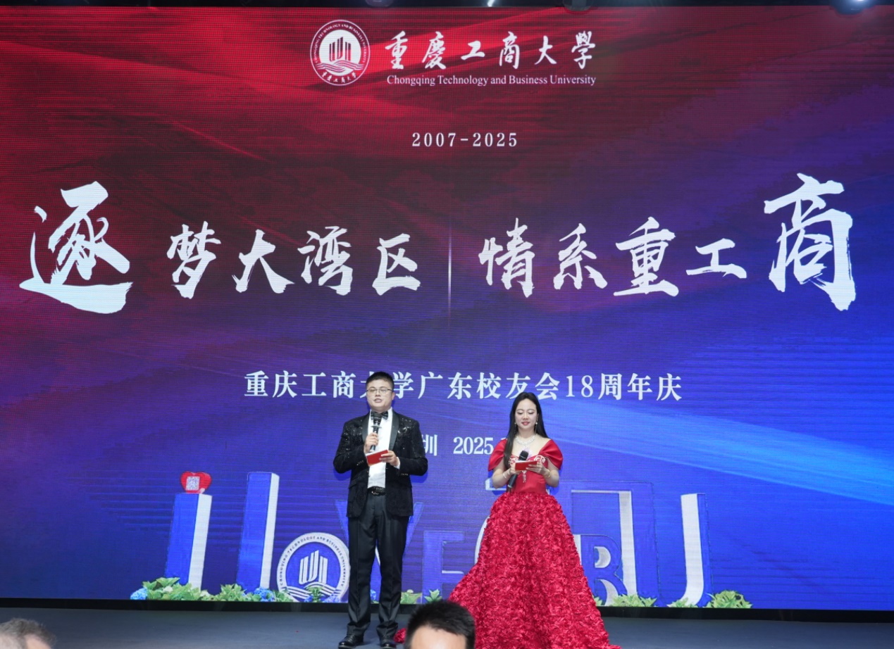 12月14日,“逐梦大湾区 情系重工商”重庆工商大学广东校友会18周年庆典在深圳举行。学校党委常委、副校长田双全,重庆市人民政府驻广东办事处主任匡建出席典礼并致辞。重庆大学、西南大学等在渝兄弟院校深圳校友会负责人、学校湖北校友会代表以及广东校友200余人齐聚鹏城、共襄盛典。典礼活动在“大路漫漫其修远长”的校歌声中启幕。
