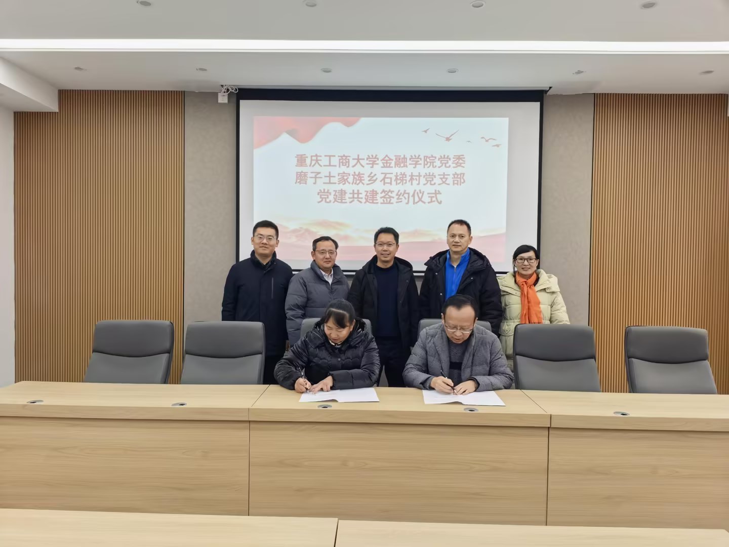 随后金融学院党委和磨子土家族乡石梯村党支部共同签订了《党建带团建推动红岩育人实践三方协议》,共商校地协同育人与乡村振兴融合发展新路径。